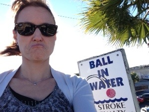 Und es kommt wie es kommen muss – etwa bei Loch 12 verliere ich meinen Golfball an einen reissenden Bach… Und – wie wir spaeter anhand eines entsprechenden Schildes feststellen muessen – ich kriege einen Strafschlag aufgebrummt… :-(( Naja, es gibt definitiv Schlimmeres, immerhin habe ich noch etwas Vorsprung dank meiner 2 oder so Hole-in-ones 😉 Trotzdem sind wir gezwungen mit einem Ball weiterzuspielen bis zur letzten Anlage, wo wie ueblich unser Ball eingezogen wuerde. So musste ich wohl oder uebel nochmal einen Ball holen gehen. Die Dame am Kiosk lachte nur und sagte, kein Problem, das passiere staendig. Ich solle ruhig gleich mehrere mitnehmen (hey, was wollte sie mir damit sagen??!?). So spielten wir also noch das letzte Hindernis, erfolgreich und selbst ich in unter 7 Schlaegen.