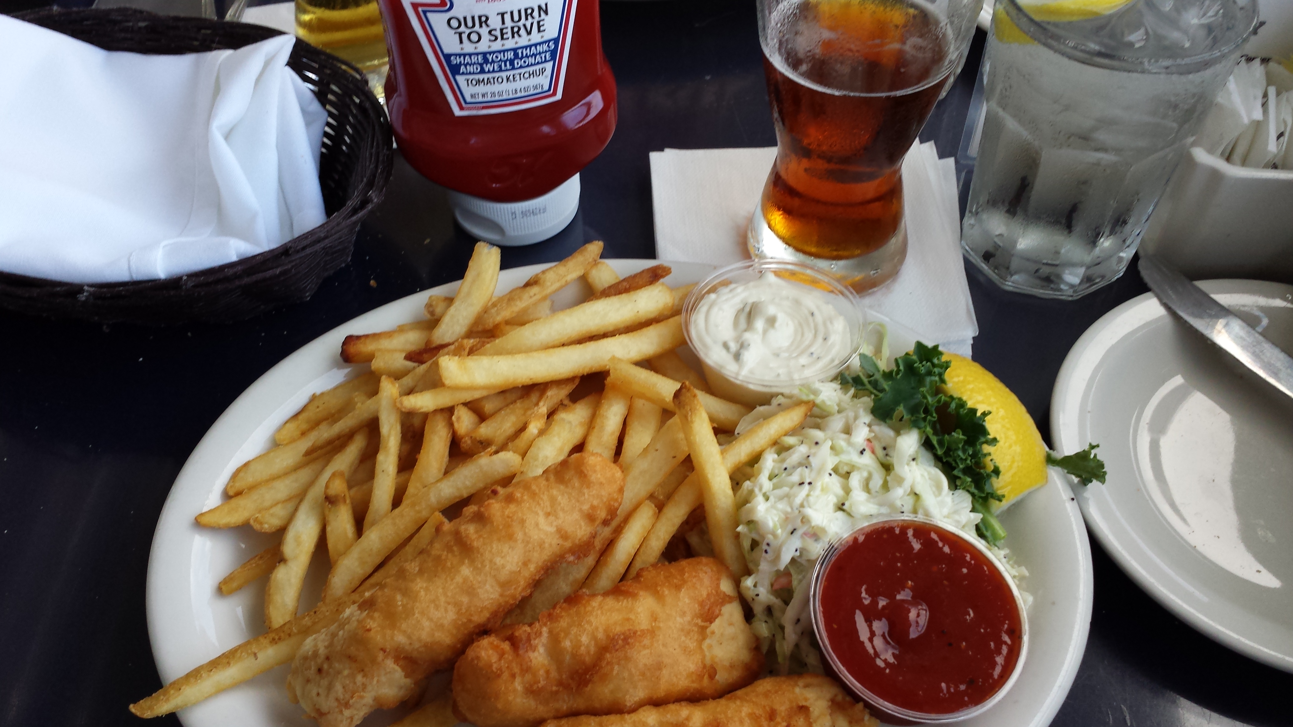 Ach ja, nach der Zeremonie ging’s natürlich weiter zum Hochzeitsschmaus: Fish ‘n’ Chips at Brophy Bros Clam Bar (www.brophybros.com) – sensationell!!