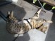 Am nächsten Tag verstehe ich, was mit dem “zusätzlichen Stress” gemeint war: Merlin liegt groggy und mit weit aufgerissenen Pupillen in seinem Krankenkäfig, ein Infusionsschlauch hängt aus seiner verbundenen Vorderpfote. Um die Narbe am Bauch zu schützen wurde ihm ein Body übergezogen, welches er verzweifelt abzuschütteln versucht. Er ist ein kläglicher Anblick und mir zieht sich der Brustkasten zusammen. Trotzdem bin ich überglücklich, denn trotz der Schmerzmittel scheint er munter zu sein, er nimmt seine Umgebung wahr und erkennt mich. Ich bin guten Mutes.