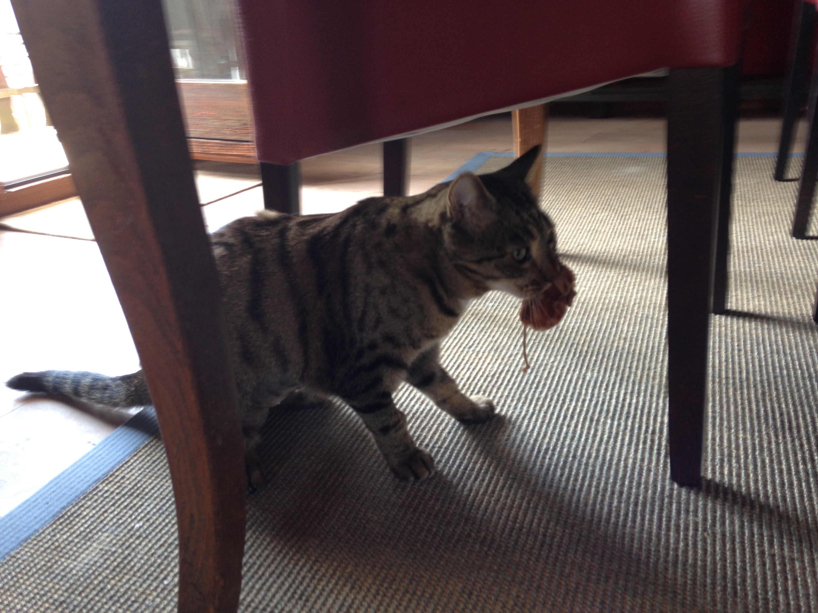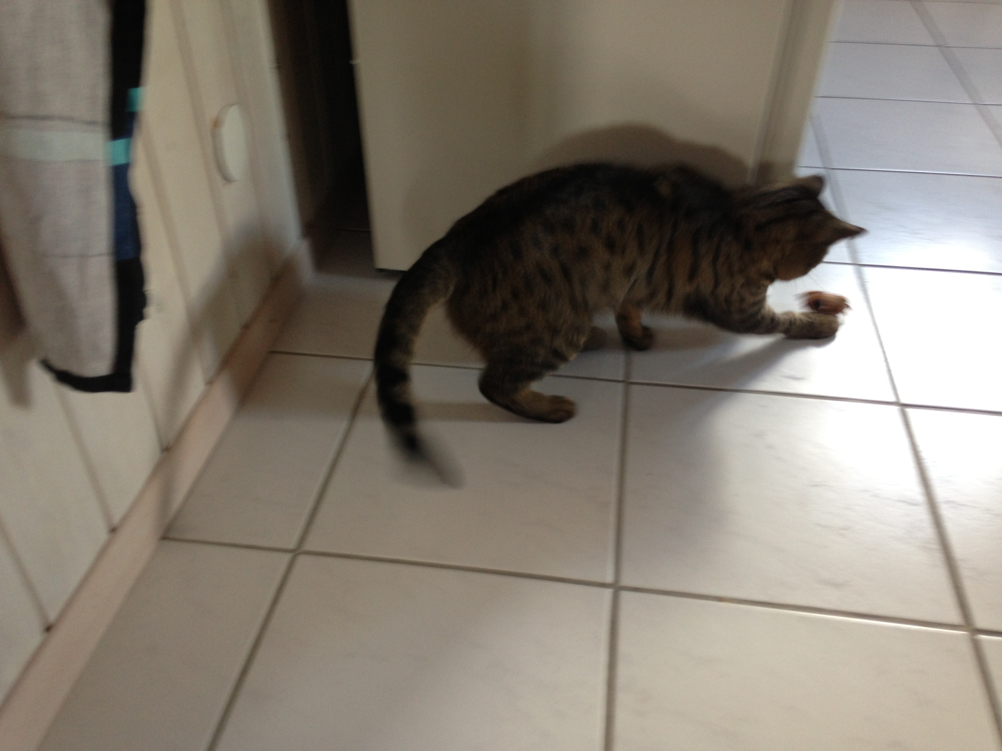 So verbringen wir die ersten drei Tage zusammen, er mit viel schlafen während ich lese, esse, telefoniere, fernsehe, alles direkt neben ihm, um sicherzustellen, dass es ihm auch gut geht. Nach drei Tagen aber ist die Verwandlung komplett: Es ist Dienstagmorgen, eine Woche ist seit dem Eingriff vergangen – und Merlin rennt mir um die Ohren. Er ist voller Energie, will spielen und möchte das Zimmer verlassen. Also gebe ich ihm den Rest der Wohnung zurück. Er flitzt umher und weil ich ab sofort Oskar persönlich vor die Tür und wieder reinlassen muss, findet Merlin das höchst interessant und möchte natürlich auch raus. Er ist dermassen aktiv, dass ich am Mittwoch verzweifelt in der Klinik anrufe und frage, ob die Fäden früher gezogen werden können. Doch nichts da, sehr geduldig aber bestimmt erklärt mir die Assistentin, dass ich bis Freitag warten muss, 10 Tage müssen die Fäden mindestens drin sein.