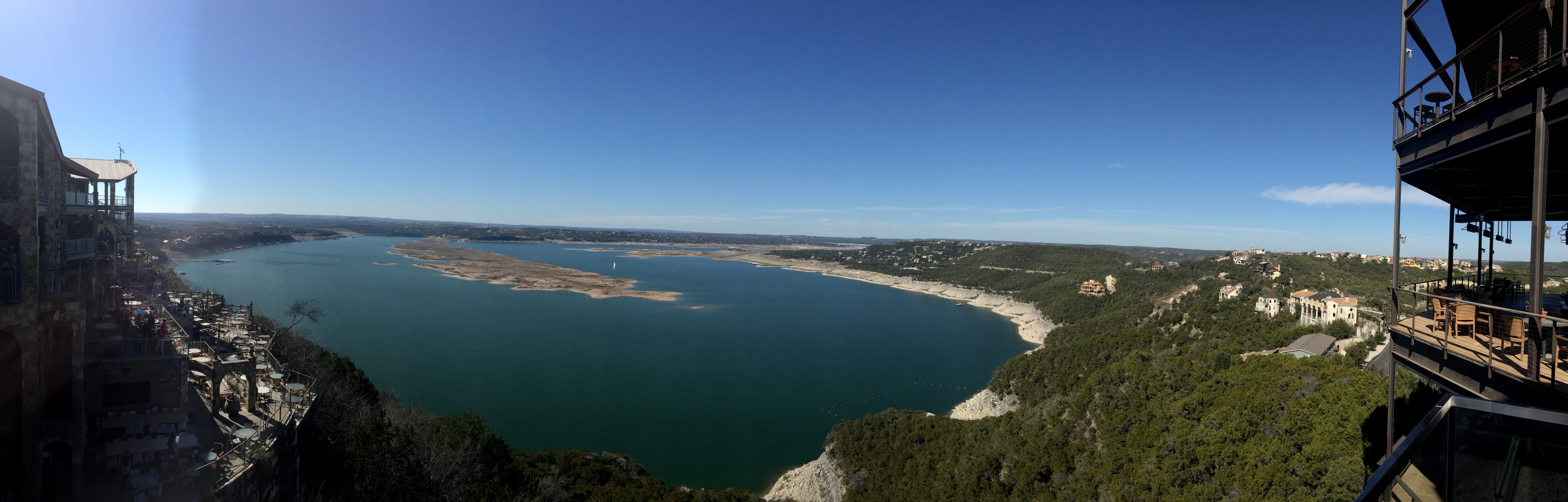 Next on my list was a place called The Oasis, a kind of mall built around a restaurant situated most picturesquely above Lake Travis; the latter is used for flood control, water supply, electrical power generation and recreation. Owing to the 2010-2013 Southern United States droughts water levels are still incredibly low but rainfalls have improved during fall and winter and there’s still more rain to be expected before spring and summer come around again.
