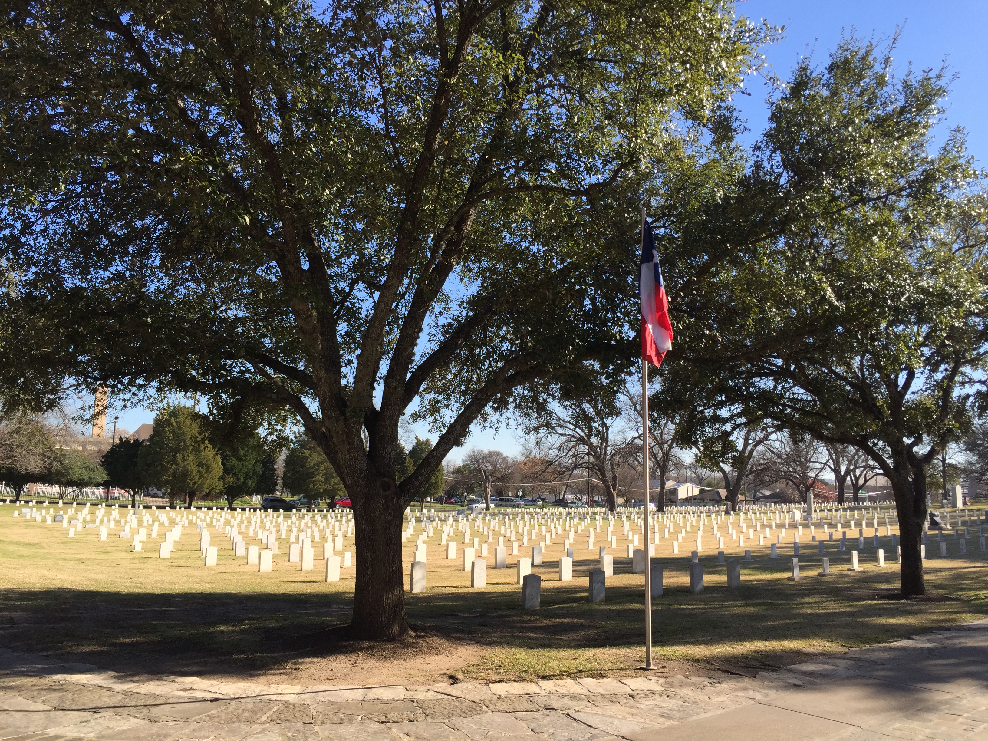 Zu guter Letzt entschied ich mich noch, mir den Texas State Cemetery anzugucken. Ich hatte zwei Gründe, dies zu tun. Zunächst weil man in der Schweiz keine Veteranengräber zu sehen bekommt. Reihe um Reihe entweder weisser Kreuze oder – in diesem Fall – blendend weisser Grabsteine versehen mit Namen gefallener Soldaten, die bis ins Jahr 1850 zurückreichen. So viele historische Gebäude es in der Schweiz auch geben mag (und mit historisch meine ich von 1200 A.D. und älter), so findet man doch kaum einen Grabstein, der so alt wäre wie diese hier. Das beruht natürlich darauf, dass der Boden in der Schweiz äusserst begrenzt ist und somit die Aufrechterhaltung eines Grabes über 20 oder höchstens 50 Jahre fast unmöglich teuer wird.