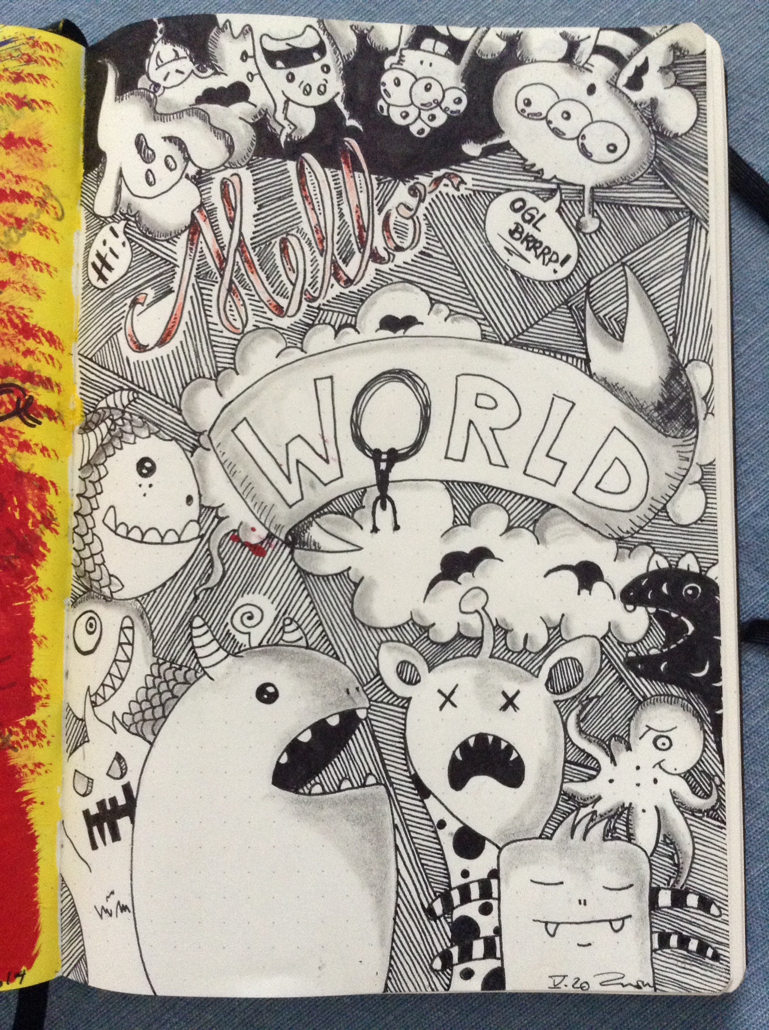 Zugegeben, dieser Tage hole ich mir viel Inspiration im Internet. Einige meiner kleinen Monster und Muster mögen ähnlich aussehen wie die auf anderen Doodle Bildern. Doch sei gewahr dass es nicht meine Absicht ist, einfach zu kopieren, sondern zu lernen: Die Lernmethode, die für mich immer am besten funktioniert hat ist Imitieren und Kopieren. Wenn ich einmal die Grundlagen begriffen habe, kann ich meinen eigenen Stil entwickeln; egal ob es sich um Malen, Zeichnen oder das Sprechen einer Sprache, Tanzen, Snowboarden etc. handelt. Solltest du also ein Stück deiner eigenen Kunst hier wiederfinden – fühl dich nicht abgezockt sondern geehrt: Deine Arbeit hat mich inspiriert!