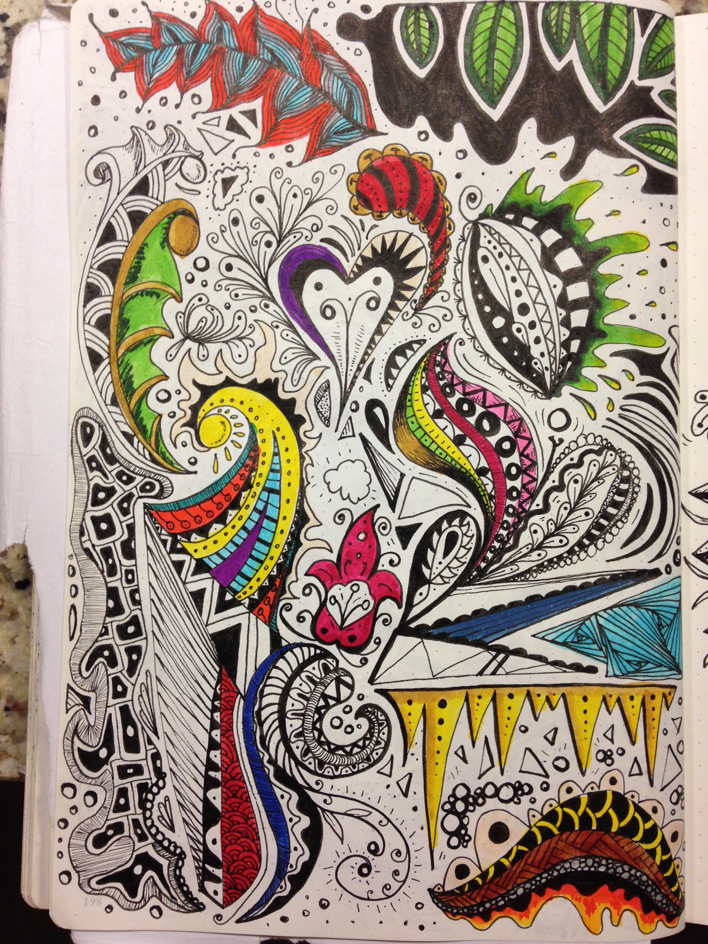 I have a zen doodle book at home that I copy designs out of. Sometimes I create my own designs but I have to admit that the process of creating art as a copyist comes much more easily to me and has a heightened effect of relaxation for me.