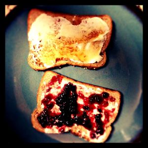 But that’s not what I intended to present here. What I thought about instead was the breakfast I have when I crave some Swiss deliciousness. And since a person can hardly survive on a chocolate diet (sigh) I resort to: Swiss marmalade.